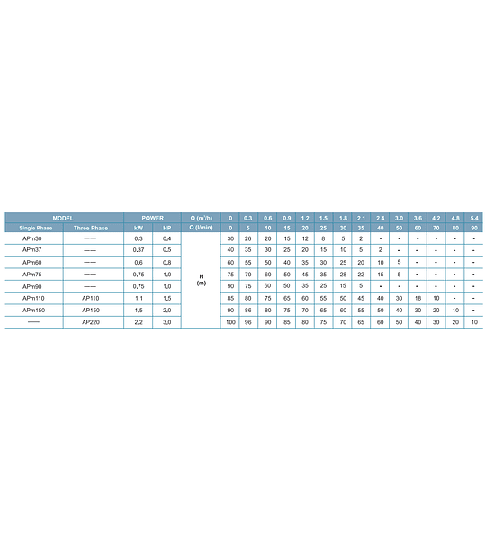 Adecuada para bombear agua libre de impurezas, con caudales medios - bajos a gran altura, con succion hasta 8 metros de profundidad.